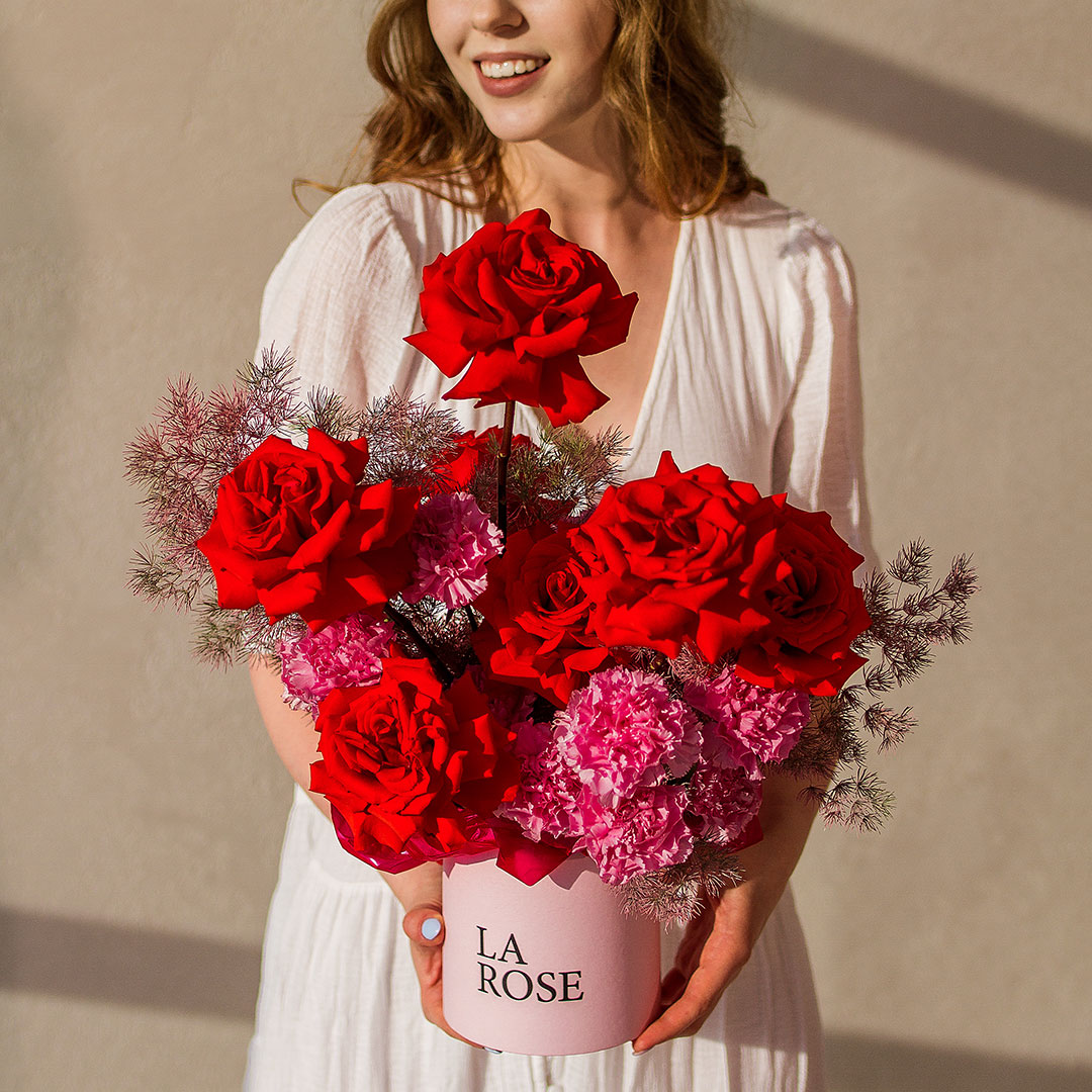 Свежие цветы от La Rose доставляются в фирменной коробке и вазе. Переставьте букет из аквабокса в вазу с водой, предварительно подрезав стебли под углом. Меняйте воду ежедневно, обновляя срез. На 2-3-й день можете добавить наш порошок. Используйте холодную воду и добавляйте лёд для лучшего эффекта. Держите цветы вдали от отопителей, солнца и фруктов — они вредят растениям.