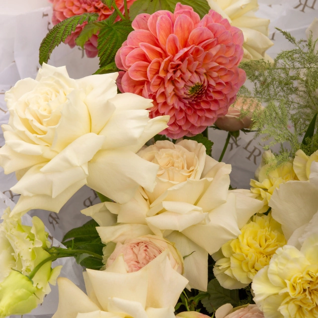 Некоторые цветы и материалы являются сезонными и могут быть недоступны в данный момент, поэтому мы оставляем за собой авторское право определять конечный состав букета.