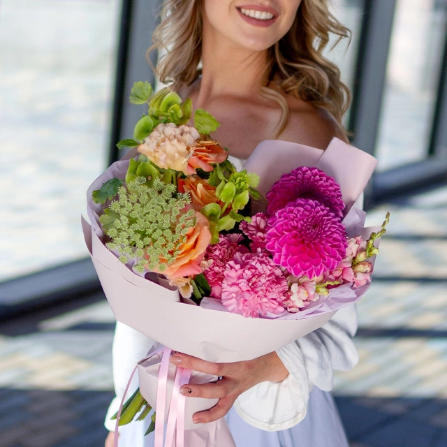 Некоторые цветы в этом букете отсутствуют из-за повышенного спроса или сезонности. Мы ГАРАНТИРОВАННО подберем равноценную альтернативу, сохраняя стиль и цветовую гамму букета. Стоимость и дизайн композиции согласовываются с вами до оплаты заказа. Ваше удовлетворение нашей работой — наш главный приоритет!