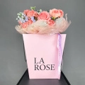 Свежие цветы от La Rose доставляются в фирменной коробке и вазе. Переставьте букет из аквабокса в вазу с водой, предварительно подрезав стебли под углом. Меняйте воду ежедневно, обновляя срез. На 2-3-й день можете добавить наш порошок. Используйте холодную воду и добавляйте лёд для лучшего эффекта. Держите цветы вдали от отопителей, солнца и фруктов — они вредят растениям.