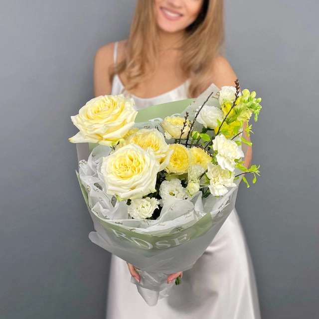 Некоторые цветы в этом букете отсутствуют из-за повышенного спроса или сезонности. Мы ГАРАНТИРОВАННО подберем равноценную альтернативу, сохраняя стиль и цветовую гамму букета. Стоимость и дизайн композиции согласовываются с вами до оплаты заказа. Ваше удовлетворение нашей работой — наш главный приоритет!