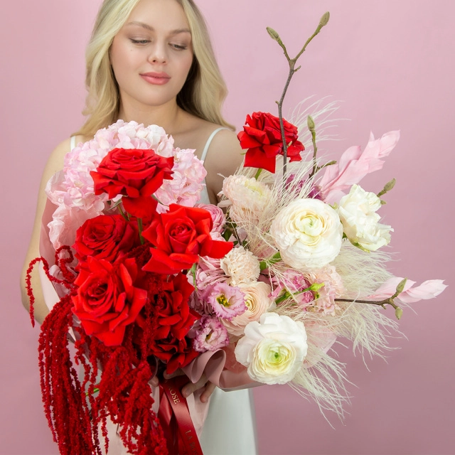 Некоторые цветы и материалы являются сезонными и могут быть недоступны в данный момент, поэтому мы оставляем за собой авторское право определять конечный состав букета.