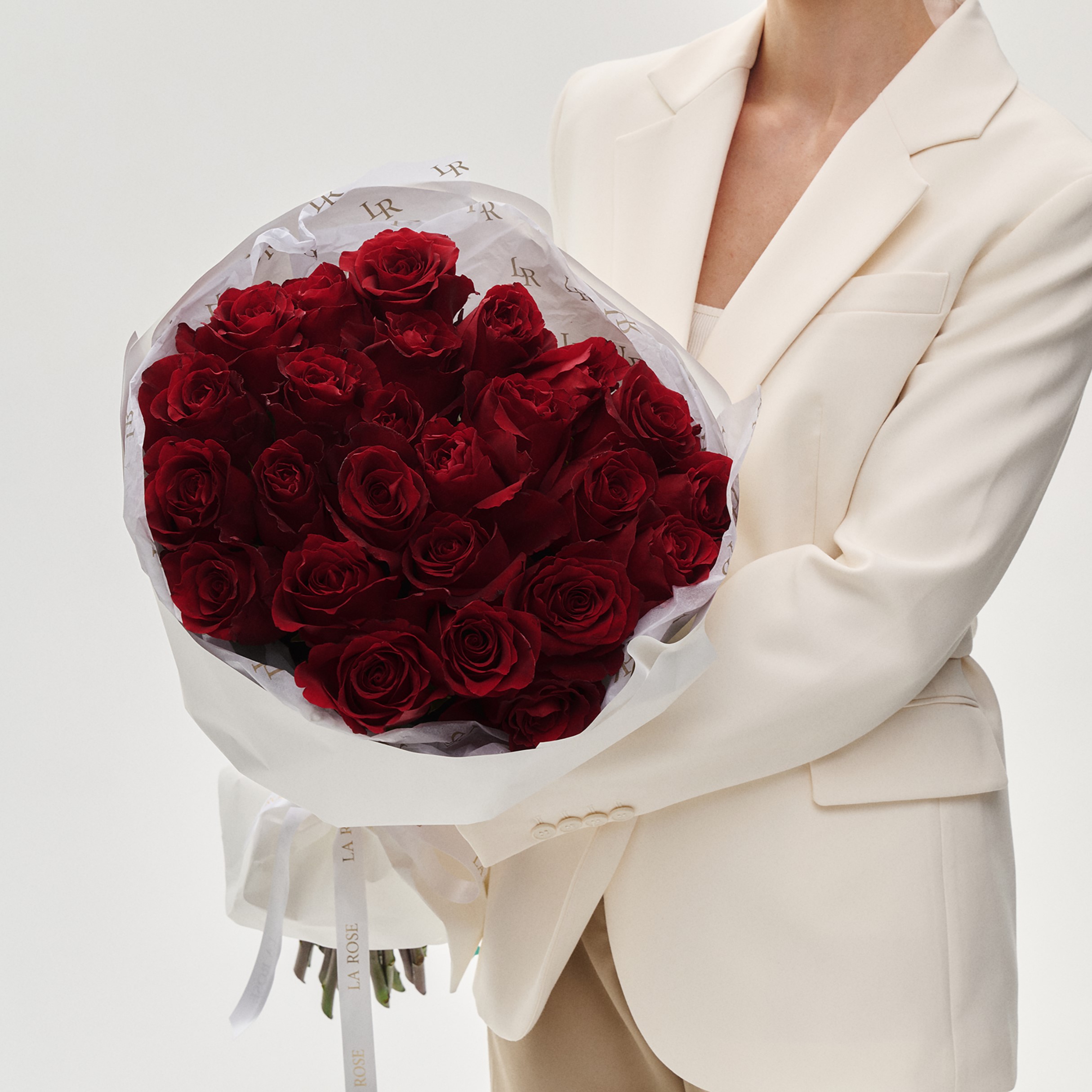 Глубокий насыщенный красный цвет и безупречная форма бутонов делают эту композицию символом страсти, любви и глубоких чувств. Этот монобукет — идеальный выбор для признания в любви, предложения руки и сердца, годовщины отношений или романтического свидания.