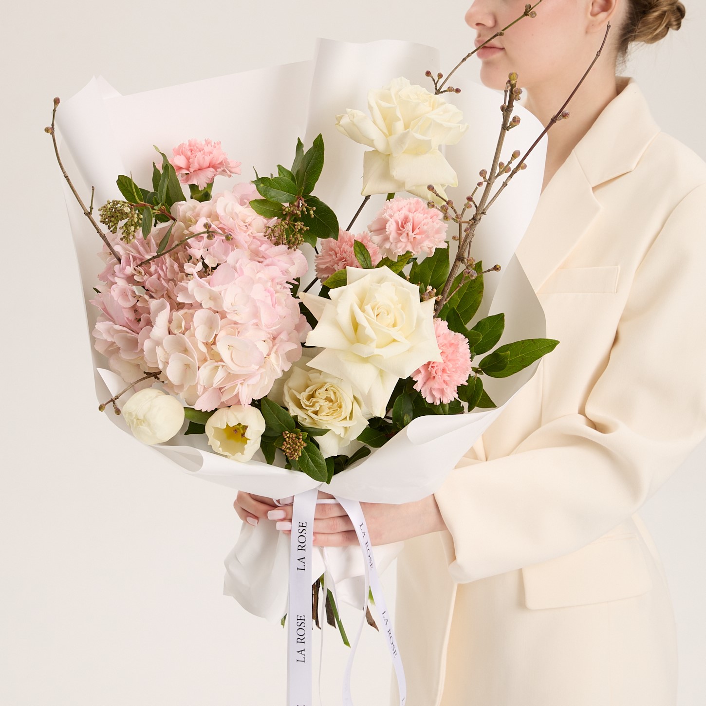 Некоторые цветы в этом букете отсутствуют из-за повышенного спроса или сезонности. Мы ГАРАНТИРОВАННО подберем равноценную альтернативу, сохраняя стиль и цветовую гамму букета. Стоимость и дизайн композиции согласовываются с вами до оплаты заказа. Ваше удовлетворение нашей работой — наш главный приоритет!