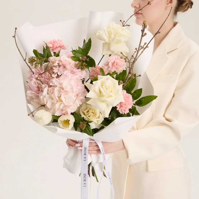 Свежие цветы от La Rose доставляются в фирменной коробке и вазе. Переставьте букет из аквабокса в вазу с водой, предварительно подрезав стебли под углом. Меняйте воду ежедневно, обновляя срез. На 2-3-й день можете добавить наш порошок. Используйте холодную воду и добавляйте лёд для лучшего эффекта. Держите цветы вдали от отопителей, солнца и фруктов — они вредят растениям.