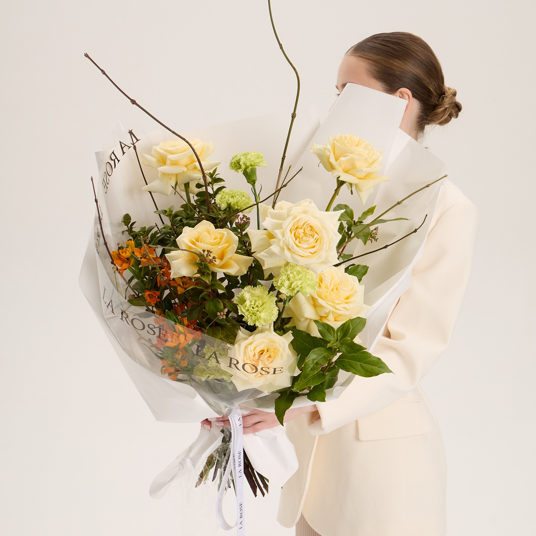 Свежие цветы от La Rose доставляются в фирменной коробке и вазе. Переставьте букет из аквабокса в вазу с водой, предварительно подрезав стебли под углом. Меняйте воду ежедневно, обновляя срез. На 2-3-й день можете добавить наш порошок. Используйте холодную воду и добавляйте лёд для лучшего эффекта. Держите цветы вдали от отопителей, солнца и фруктов — они вредят растениям.