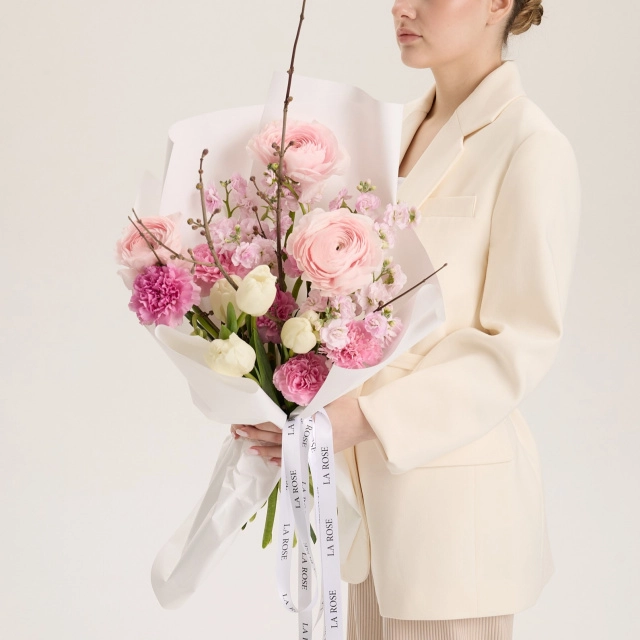 Свежие цветы от La Rose доставляются в фирменной коробке и вазе. Переставьте букет из аквабокса в вазу с водой, предварительно подрезав стебли под углом. Меняйте воду ежедневно, обновляя срез. На 2-3-й день можете добавить наш порошок. Используйте холодную воду и добавляйте лёд для лучшего эффекта. Держите цветы вдали от отопителей, солнца и фруктов — они вредят растениям.