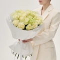 Изысканная монокомпозиция из премиальных белых роз сорта "Мондиаль" — воплощение классической элегантности и безупречного вкуса. Этот букет создан для тех, кто ценит благородную простоту и естественную красоту цветов.