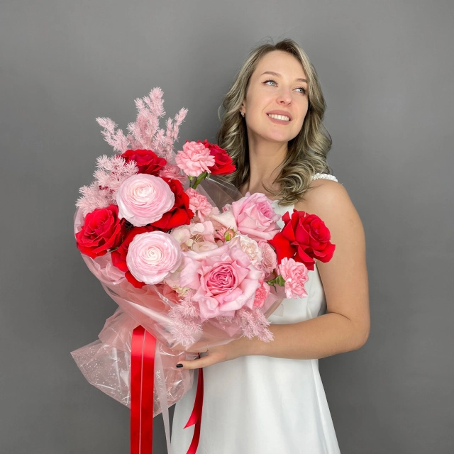 Некоторые цветы и материалы являются сезонными и могут быть недоступны в данный момент, поэтому мы оставляем за собой авторское право определять конечный состав букета.