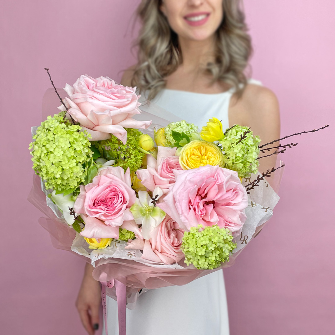 Свежие цветы от La Rose доставляются в фирменной коробке и вазе. Переставьте букет из аквабокса в вазу с водой, предварительно подрезав стебли под углом. Меняйте воду ежедневно, обновляя срез. На 2-3-й день можете добавить наш порошок. Используйте холодную воду и добавляйте лёд для лучшего эффекта. Держите цветы вдали от отопителей, солнца и фруктов — они вредят растениям.