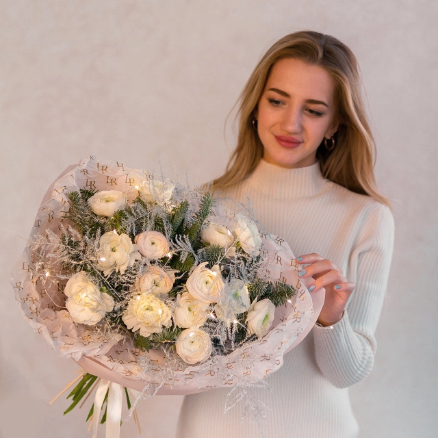 Некоторые цветы и материалы являются сезонными и могут быть недоступны в данный момент, поэтому мы оставляем за собой авторское право определять конечный состав букета.
