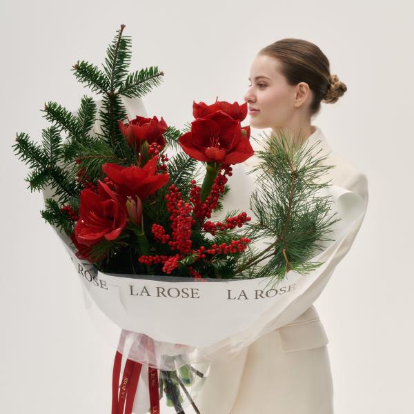 Ветка ели Nobilis КИТАЙ, Амариллис Ferrari, Илекс Rood, Сосна